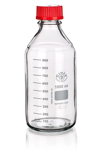 Банка для хранения реактивов, небольшого объема (100 мл). Оснащена закручивающейся красной пластиковой крышкой с уплотнительным кольцом и силиконовой прокладкой.