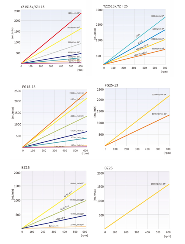 | Головка | Маркировка трубки | Производительность (мл/мин) |