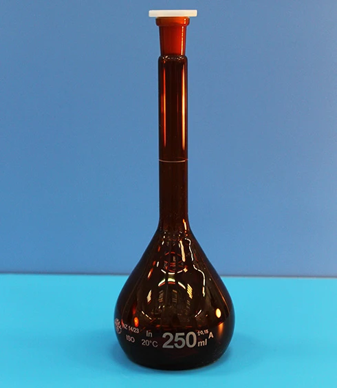 Колба мерная, класс А, 250 мл, с пластмассовой пробкой, темная