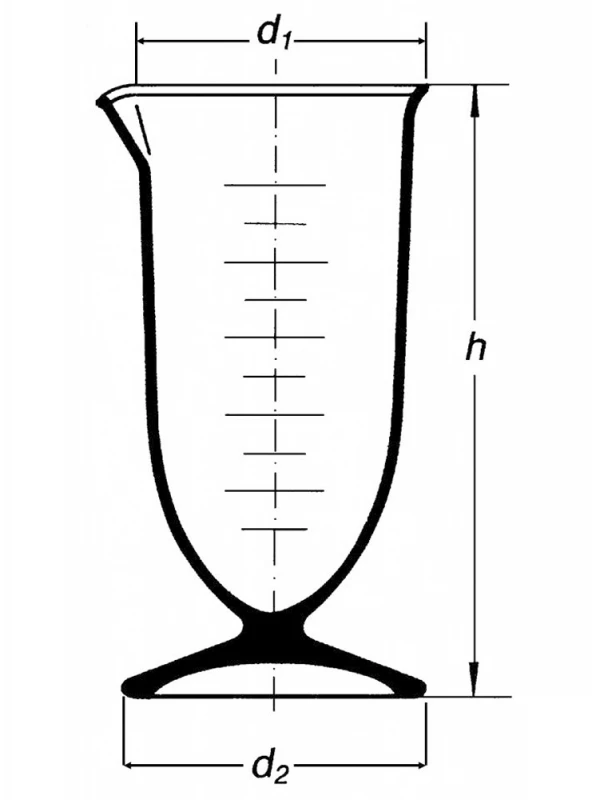 Изделие имеет форму колокола, «установленного» на широкое основание узкой стороной. Верхний край широкий, с носиком. На стенки нанесена мерная шкала.