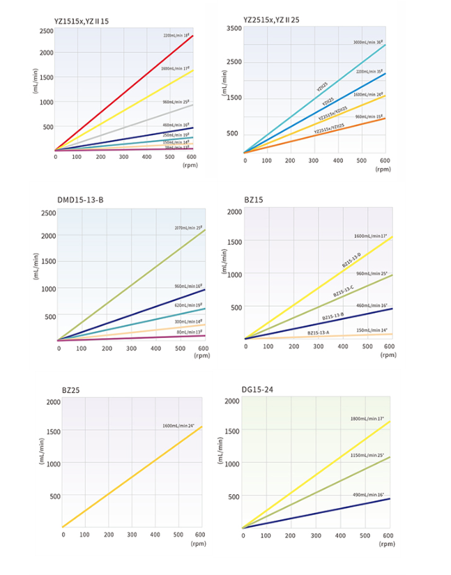 | Головка | Маркировка трубки | Производительность (мл/мин) |
