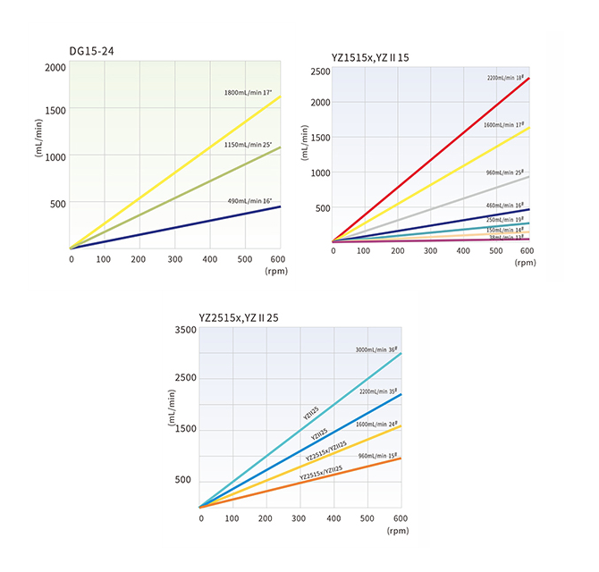 Производительность перистальтического насоса BT300-2J варьируется от 0,07 до 1500 мл/мин, что позволяет эффективно справляться с широким спектром задач: от точного дозирования до непрерывной подачи жидкости. Поддерживает работу с различными головками, включая YZ1515x, YZ2515x, YZII15, YZII25 и DG15-24, что влияет на производительность и расширяет возможности.