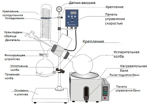 • испарительной колбы, соединенной с двигателем, отвечающим за ее вращение;
