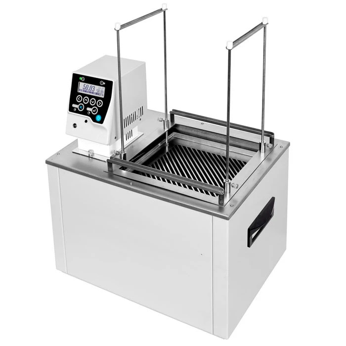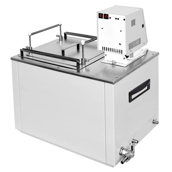Универсальный жидкостный термостат Т40 разработан для выполнения различных лабораторных работ, нуждающихся в термостатировании в жидком теплоносителе. Рабочий диапазон от +20 до +150 °С поддерживается с помощью нагревателя, циркуляционного насоса, термодатчика и цифрового блока управления. Если требуется установить t ниже окружающей среды, то к встроенному внутри ванны теплообменнику подключают водопроводную воду или внешний охладитель.