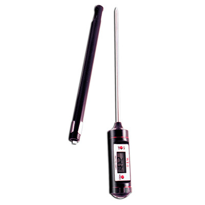 Модель оснащена щупом из нержавеющей стали и жидкокристаллическим дисплеем. Щуп имеет длину 12,5 сантиметров, а дисплей предназначен для отображения температурных показателей.