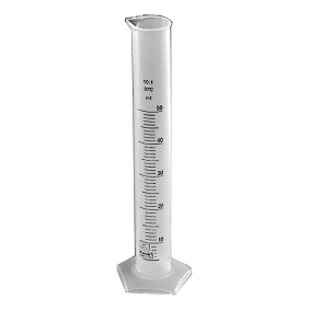 Мерный пластиковый цилиндр. Форма — высокий, с носиком и широким гексагональным устойчивым основанием. Градуировка рельефная. Мерная шкала в миллилитрах, цена деления равна 2 мл.