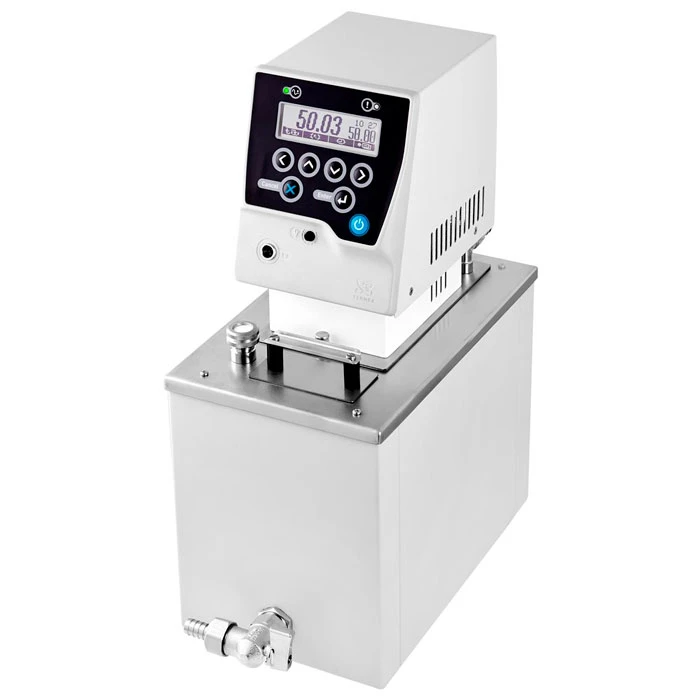 Если теплоноситель нужно охладить ниже комнатной температуры, то используют теплообменник в ванне, к которому подключают либо водопроводную воду, либо внешний низкотемпературный термостат.