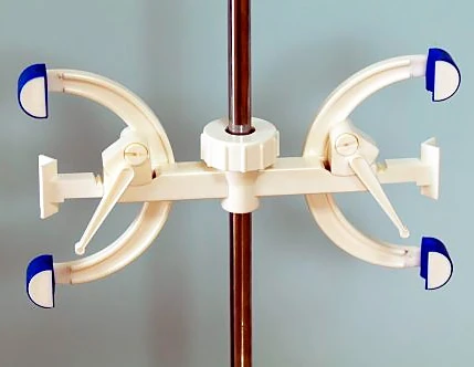 Благодаря сменным уплотнителям, зажим подходит для стержней диаметром от 0,8 см до 1,4 см. Для установки каждой бюретки предусмотрено по три лапки по обе стороны от круглого зажима. Центральные лапки снабжены пружиной, они прижимают корпус бюретки к двум боковым лапкам.
